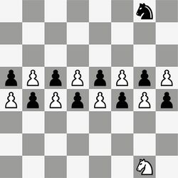 - Pion/pion : partie avec seulement les pions dans leur position de départ, le but étant de permettre à l'un d'entre eux d'atteindre la dernière rangée.[9]