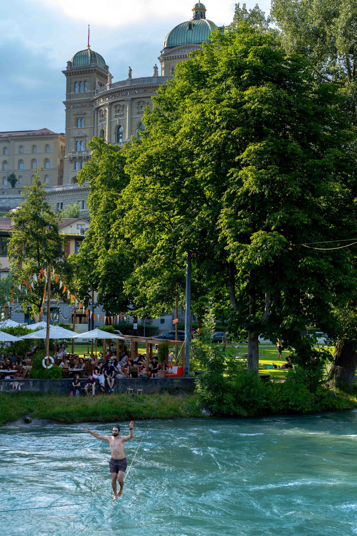 Marcial qui marche avec vue sur le palais fédéfral